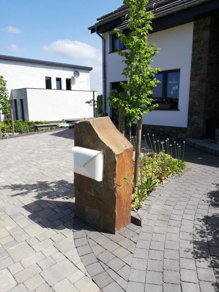 & wer keinen Platz an der Hauswand hat, für den fertigen wir auch individuelle, freistehende Halterungen/Ständer, um den Briefkasten entsprechend befestigen und platzieren zu können.