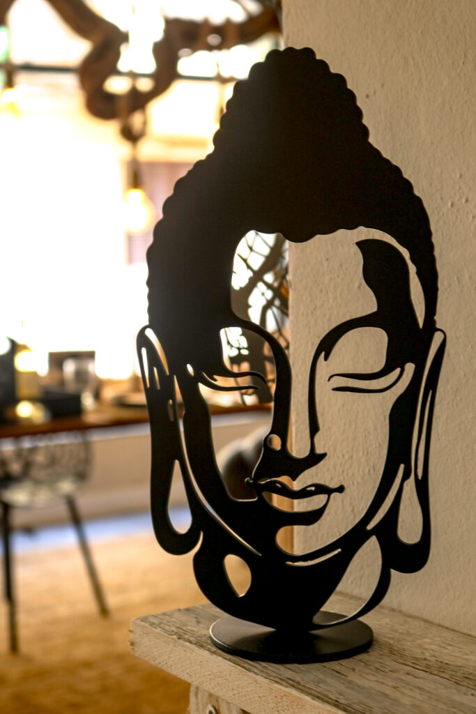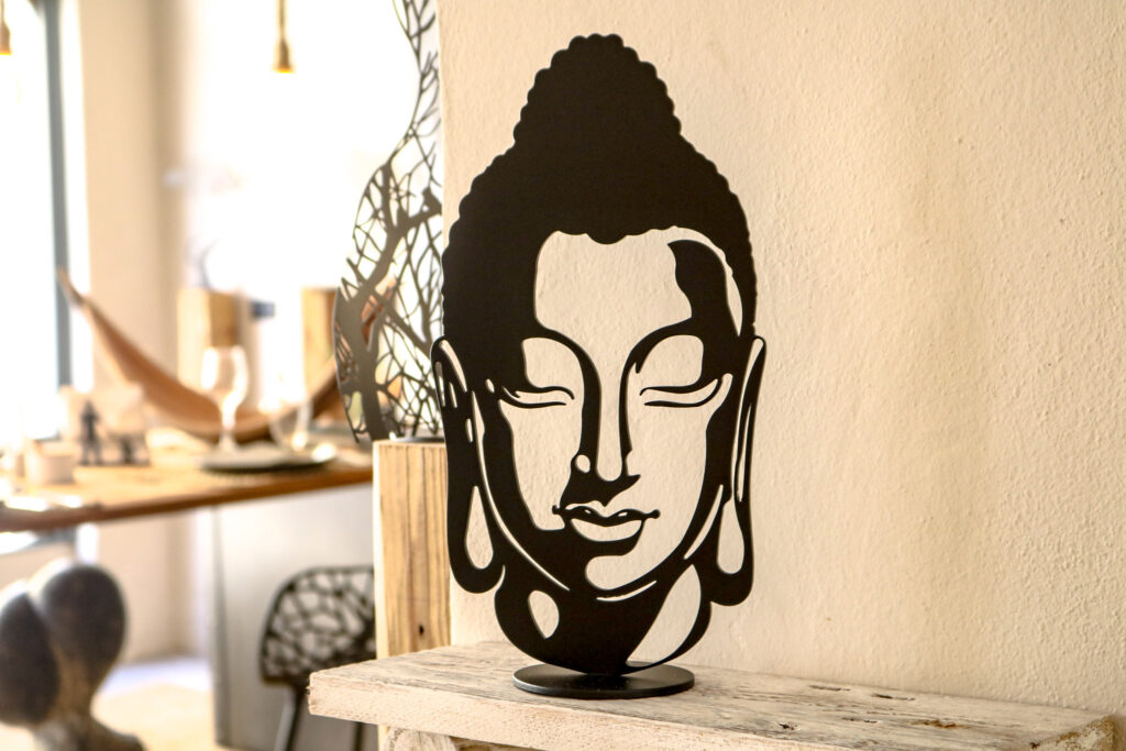 Unser Buddha-Kopf ist aus hochwertigem Stahl gefertigt und mit einer erstklassigen Pulverbeschichtung veredelt, die nicht nur seine Schönheit, sondern auch seine Langlebigkeit gewährleistet. Die feine Verarbeitung und das präzise Design verleihen diesem Kunstwerk eine zeitlose Anmut, die in jeden Raum passt.