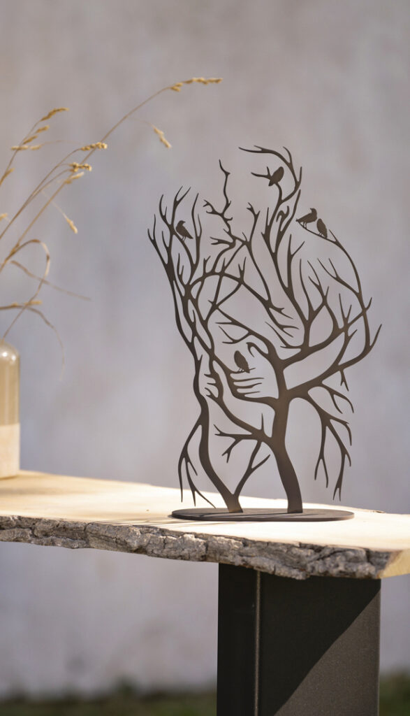 Alle unsere Skulpturen werden aus Stahl gelasert, hochwertig pulverbeschichtet und wirken durch den Farbton “Vintage Grey” sehr weich. Heben sich ab von hellen Hintergründen, ohne dass es ein zu großer, harter Kontrast ist. Somit fügen sie sich alle wunderbar in ihre Umgebung ein – werden zum zarten, aber nicht weniger auffälligen oder besonderen Blickfang.