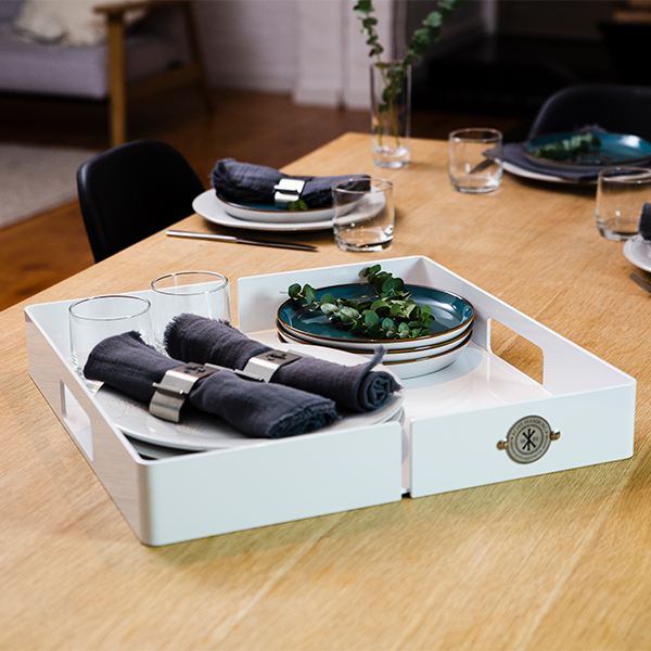 - Das rechteckige Tablett arretiert sich perfekt auf unserem Barwagen