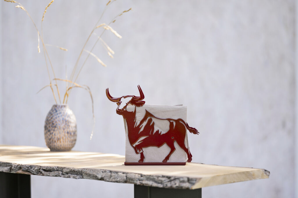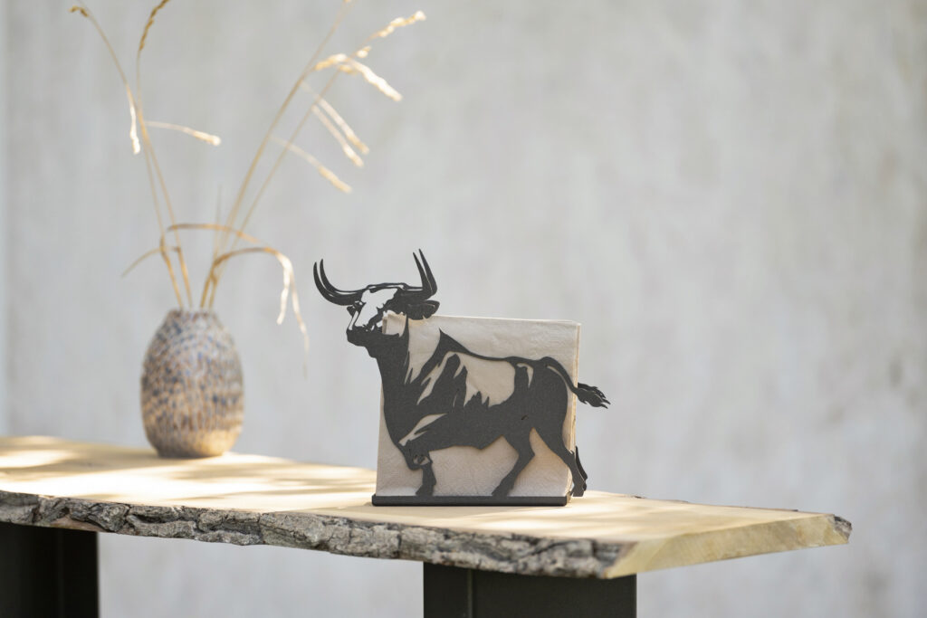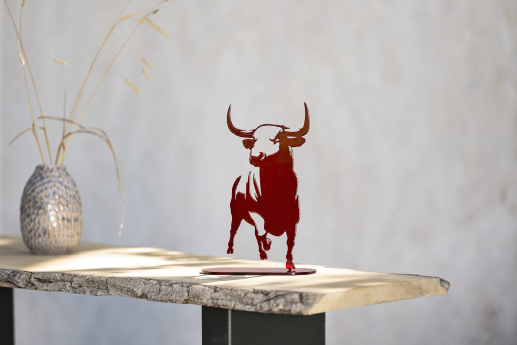 In tiefem Schwarz schreitet dieser stolze Stier mit erhobenem Vorderbein und unerschütterlicher Präsenz voran. Die dunkle Farbe betont seine rohe Kraft und majestätische Haltung. Diese Figur steht für Stärke, Entschlossenheit und das unbezwingbare Wesen der Natur. Ob als Symbol für Mut oder als imposantes Kunstwerk, der schwarze Stier verleiht jedem Raum eine Aura von Autorität und Eleganz.